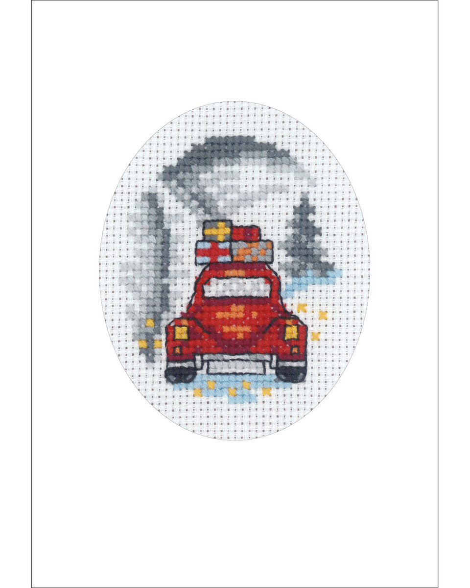 Embroidery Kit Red Car Christmas Card 9 x 13 cm / 3.54 x 5.12 in