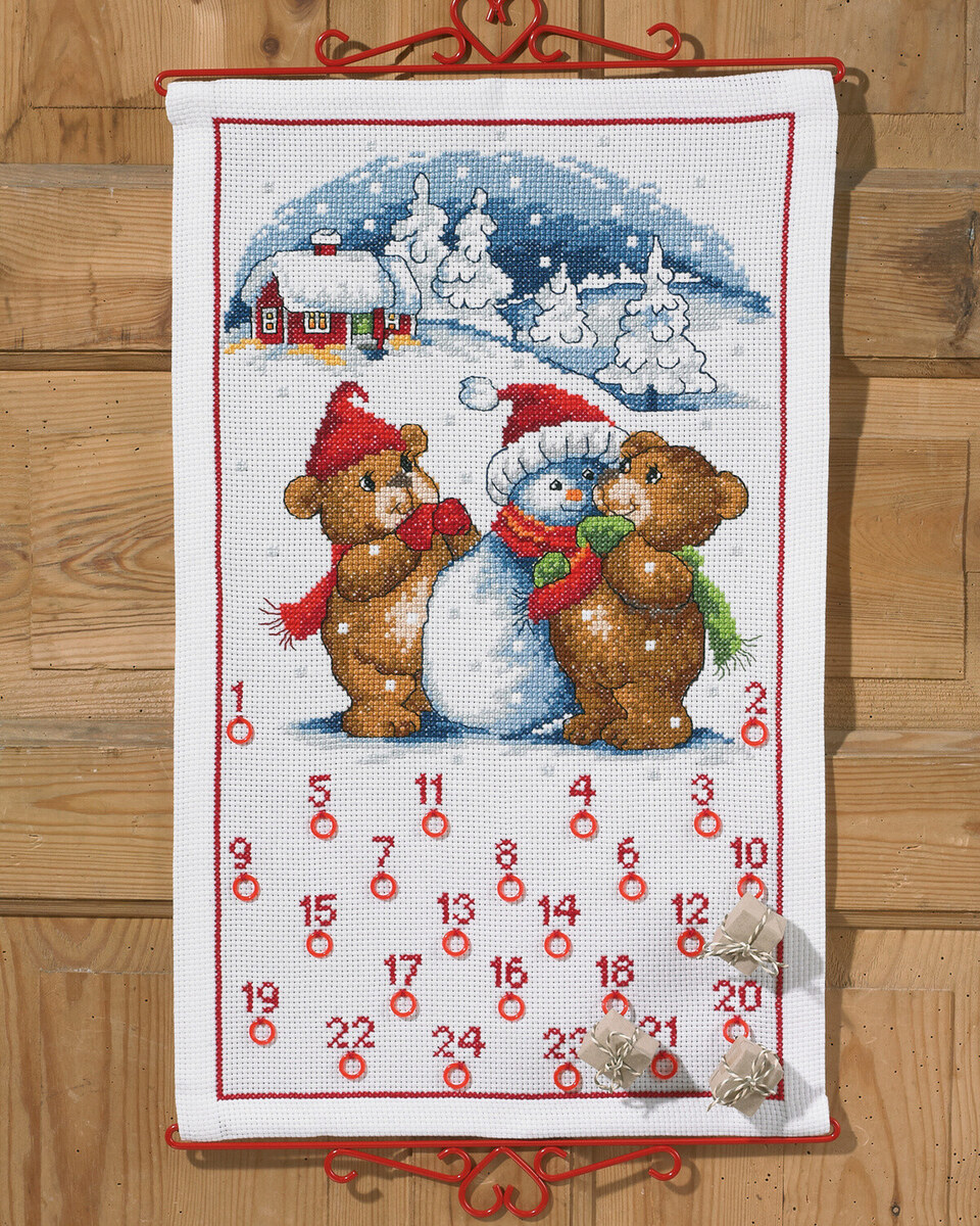 Embroidery Kit Teddy bears and snowman 5125/38 38 x 62 cm / 14.96 x 24.41 in