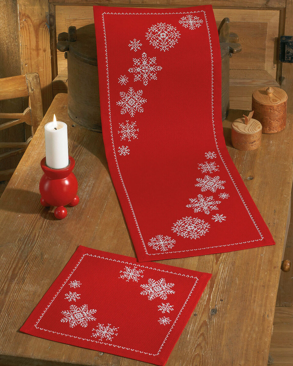 Discover the enchanting beauty of winter with our Embroidery Kit Snowflake, sized 30 x 83 cm (12 x 33 in). This kit provides a visually striking design of a delicate snowflake, set against a vibrant red background, capturing the serene essence of a snow-filled landscape. Perfect for embroidery enthusiasts of all skill levels, this kit ensures both an enjoyable crafting experience and a stunning finished product.