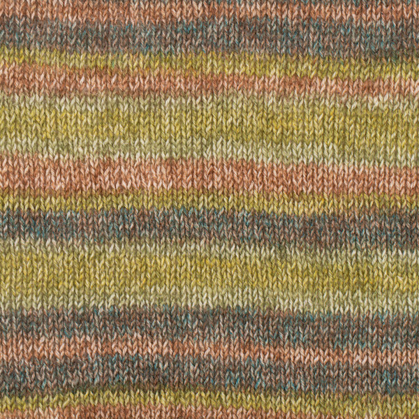 Knitting fewer stitches (as in socks) gives a clear, marl effect. On larger surfaces the colour sequences become longer and more fluid. Use the yarn to create colourful projects without having to change skeins mid‑way. As the yarn is coloured using a special “fancy dyeing” technique, small variations in colour and pattern may occur between dye lots. This adds to the unique expression of the yarn.