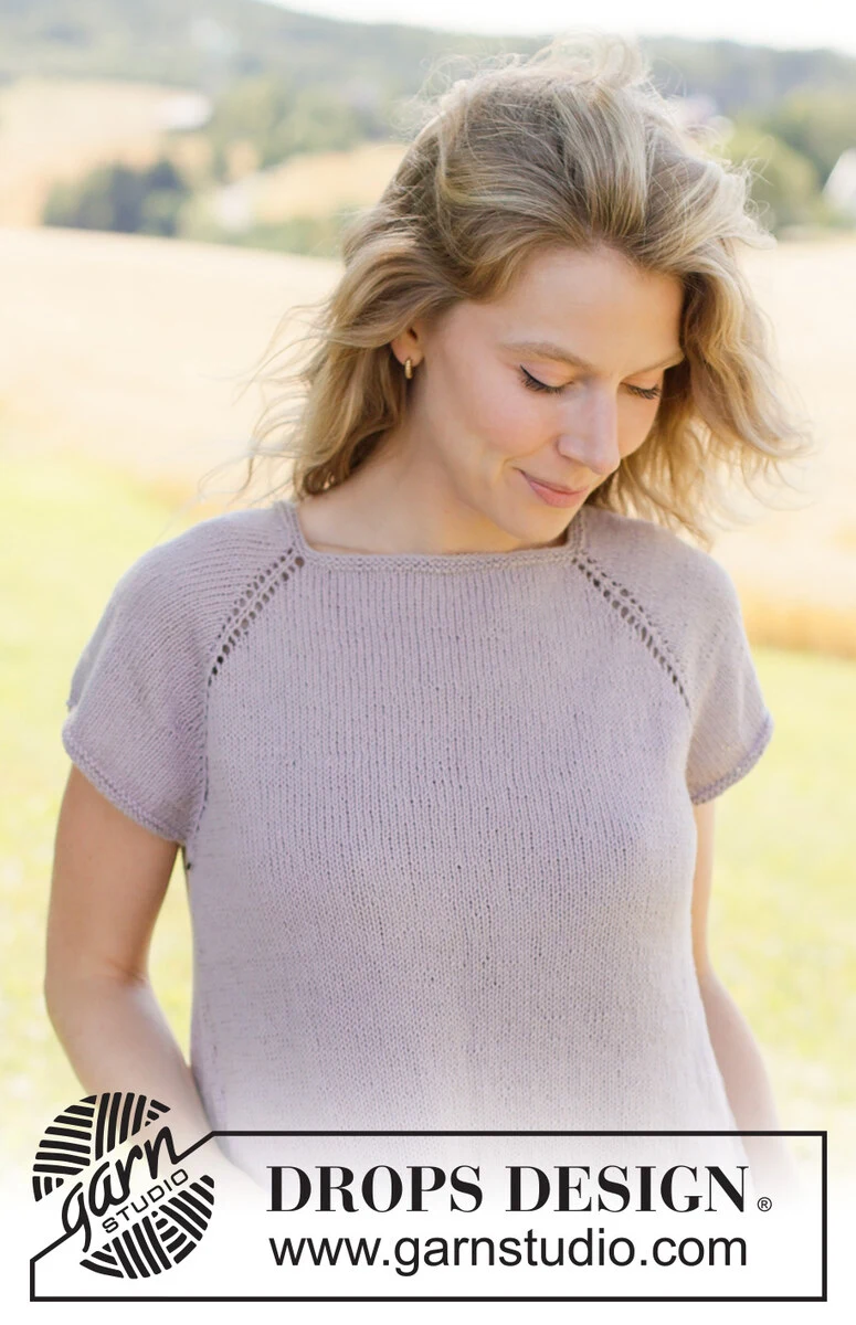Knitted top in DROPS Safran. The piece is worked top down in stocking stitch with raglan, short sleeves and ridges. Sizes XS - XXXL.