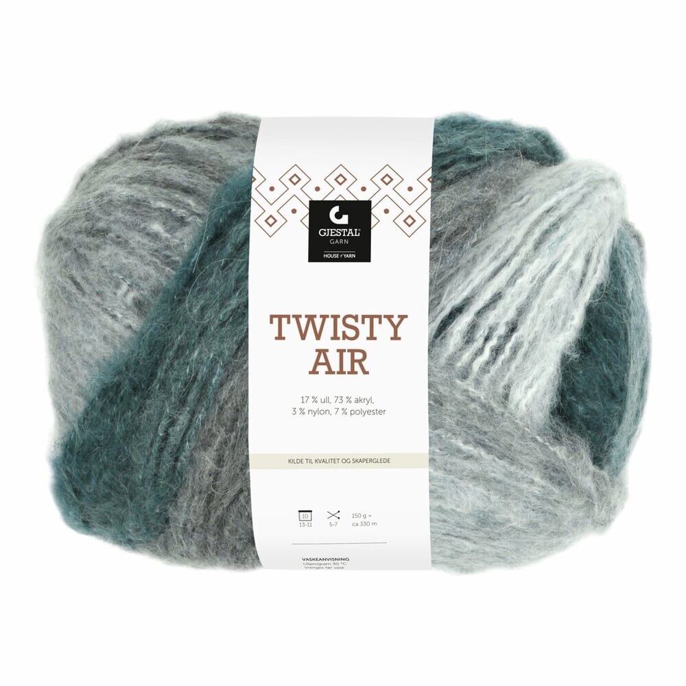 Gjestal Twisty Air is the ideal choice for knitters looking for a light and airy yarn with unique color combinations. Its versatility and beautiful color play make it a favorite for both clothing and home décor projects.
