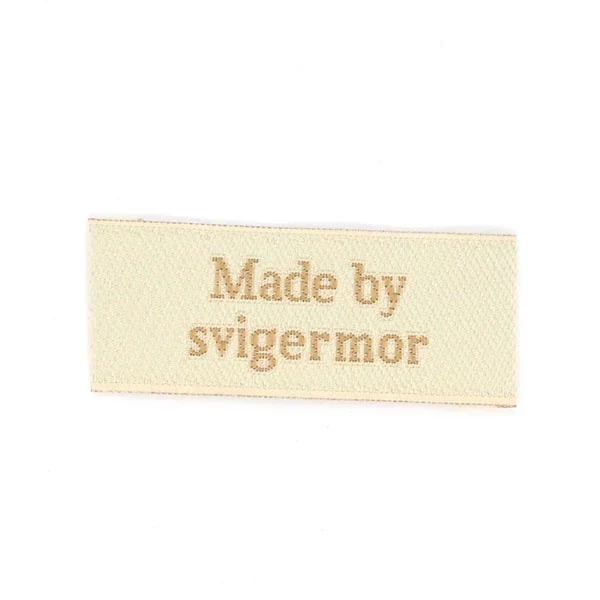 About the product: Labels with a sand-coloured background and light brown text, with different "Made by" texts to sew into your project. Choose between 15 different types.