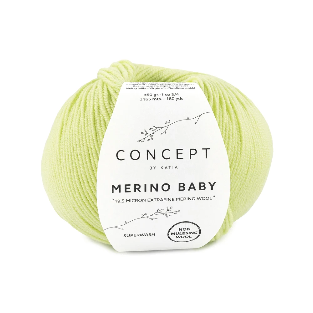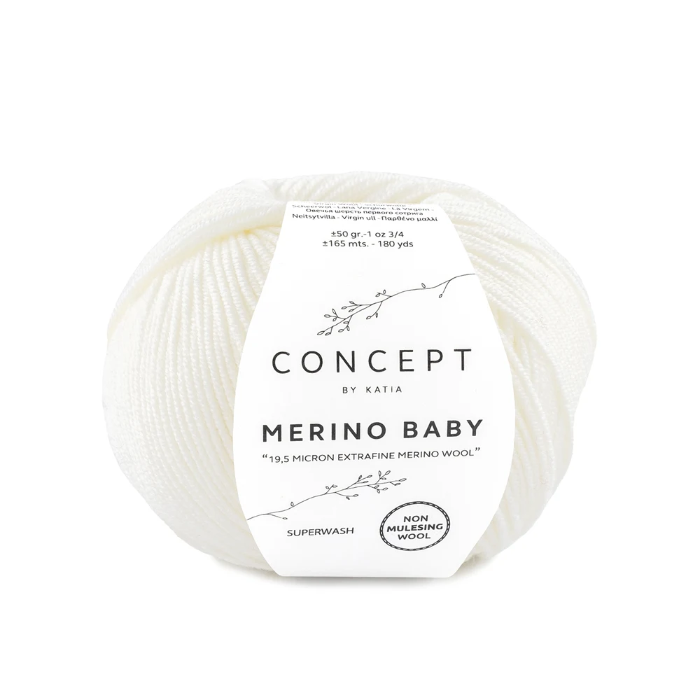 Katia Concept Merino Baby is an extra soft and classic merino yarn, developed for maximum comfort and easy care. The yarn is made from fine merino wool and treated with superwash, making it ideal for everyday use. It combines high quality with practical properties, making it especially suitable for modern knitting projects.