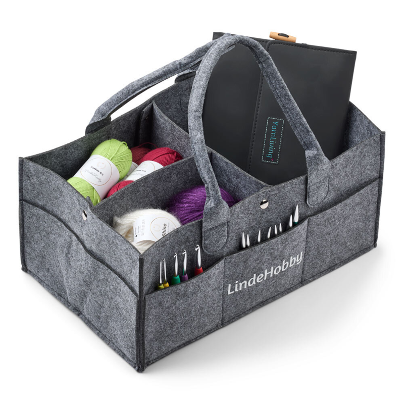 The LindeHobby Felt Basket with Snap Buttons is a sleek and practical storage solution for your creative supplies. With its elegant grey felt and smart compartment layout, it’s perfect for yarn, needles, and other crafting accessories.