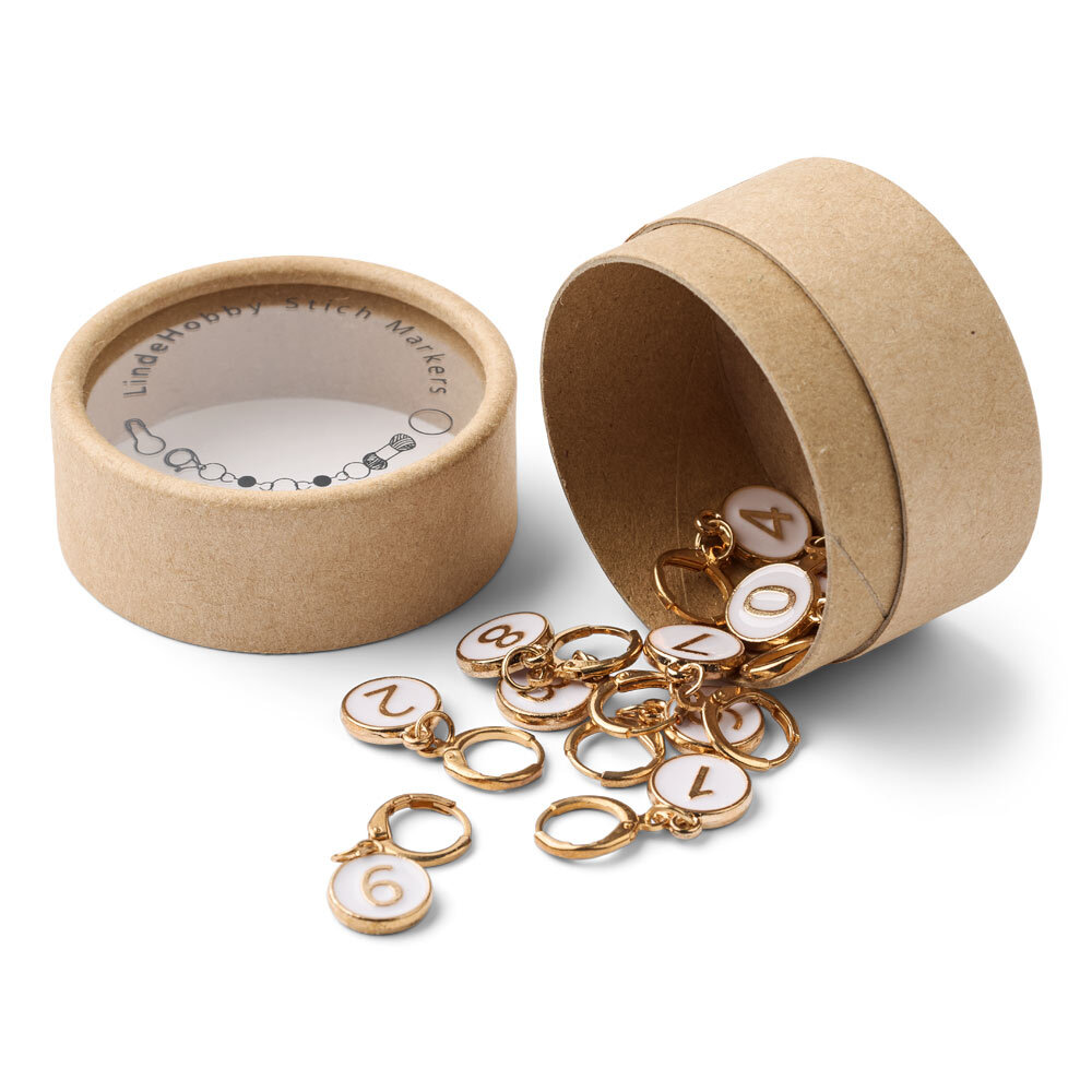 Keep track of your knitting project with style and precision. These elegant stitch markers from LindeHobby are fitted with numbers 0 to 9 and a clever clasp mechanism, so you can easily follow your rounds or mark specific points in your work. They come in a practical storage box and are both functional and decorative.