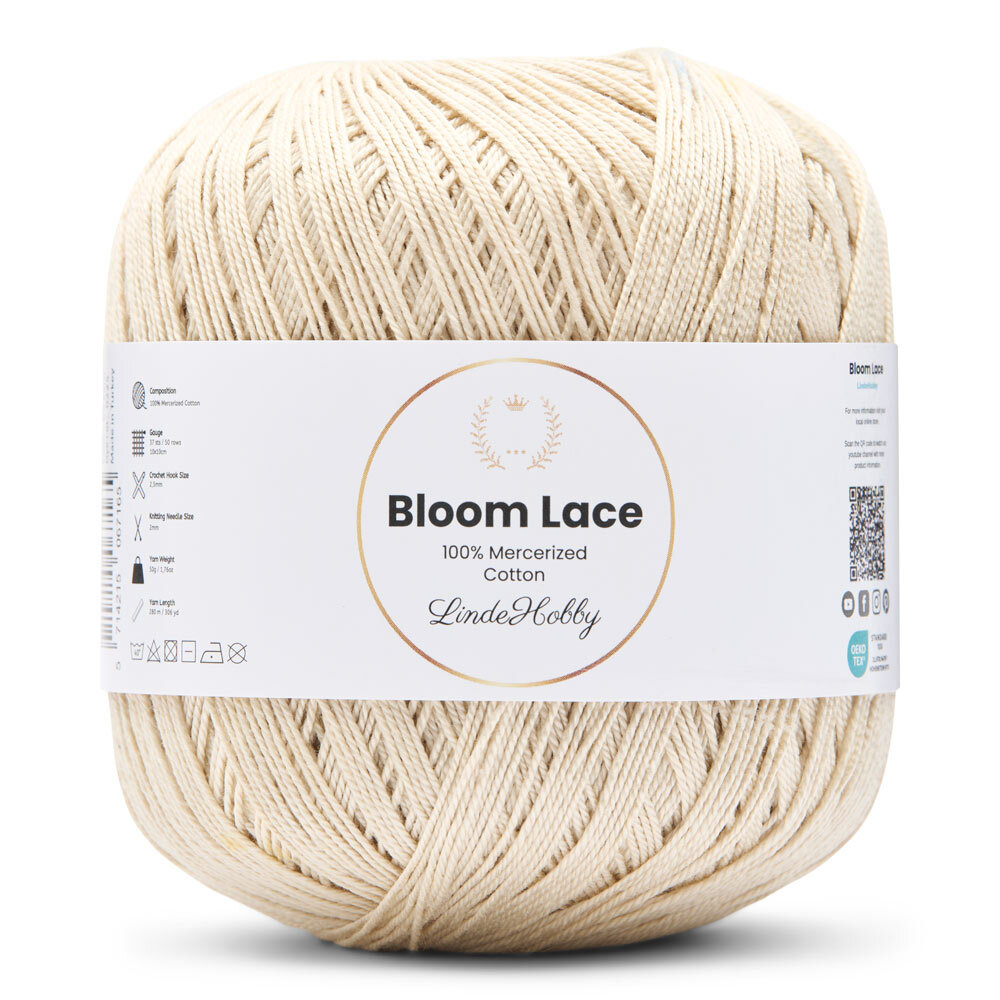 LindeHobby Bloom Lace is a luxurious lace yarn made from 100% mercerized cotton. It features a beautiful, glossy surface and a dense, smooth texture that gives your finished projects a refined and exclusive look. This fine and delicate yarn is perfect for creations that require precision and an elegant finish.