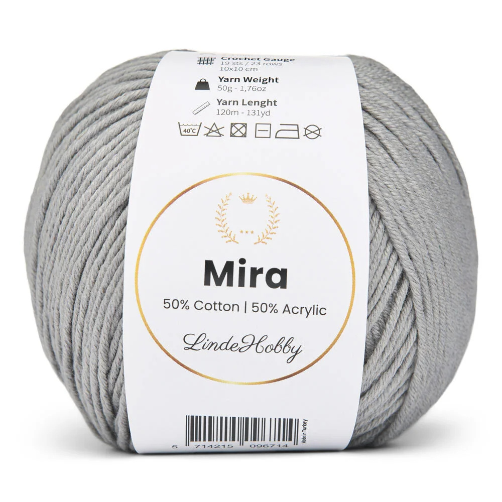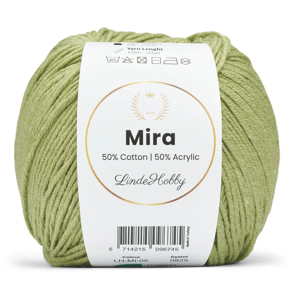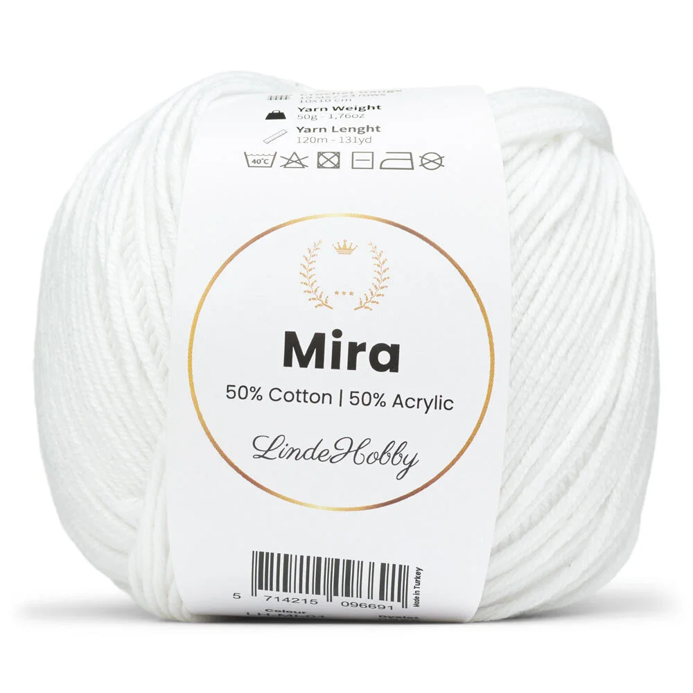 LindeHobby Mira is a solid-colour quality yarn in a carefully balanced blend of 50% cotton and 50% acrylic. The combination creates a light, soft and durable result that feels comfortable directly against the skin. The yarn retains its softness wash after wash and has a structure that ensures an even and well-defined stitch definition.