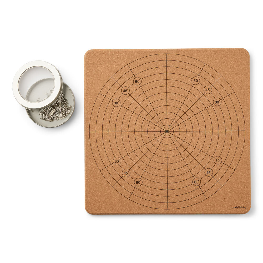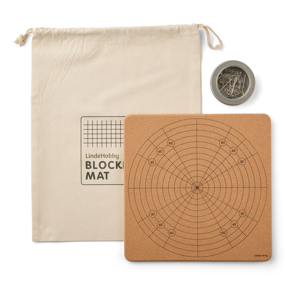 The LindeHobby blocking mat is a practical and versatile tool for shaping your crochet and knitting projects with precision. Made of cork and measuring 30x30 cm, it’s the ideal size for both small and medium-sized projects. The set includes a printed angle guide, 50 T-pins and a fabric pouch – everything you need in one pack.