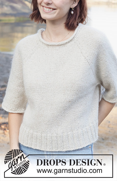 Knitted jumper in 1 strand DROPS Soft Tweed and 1 strand DROPS Kid-Silk. The piece is worked top down with raglan, stocking stitch and short sleeves. Sizes S - XXXL.