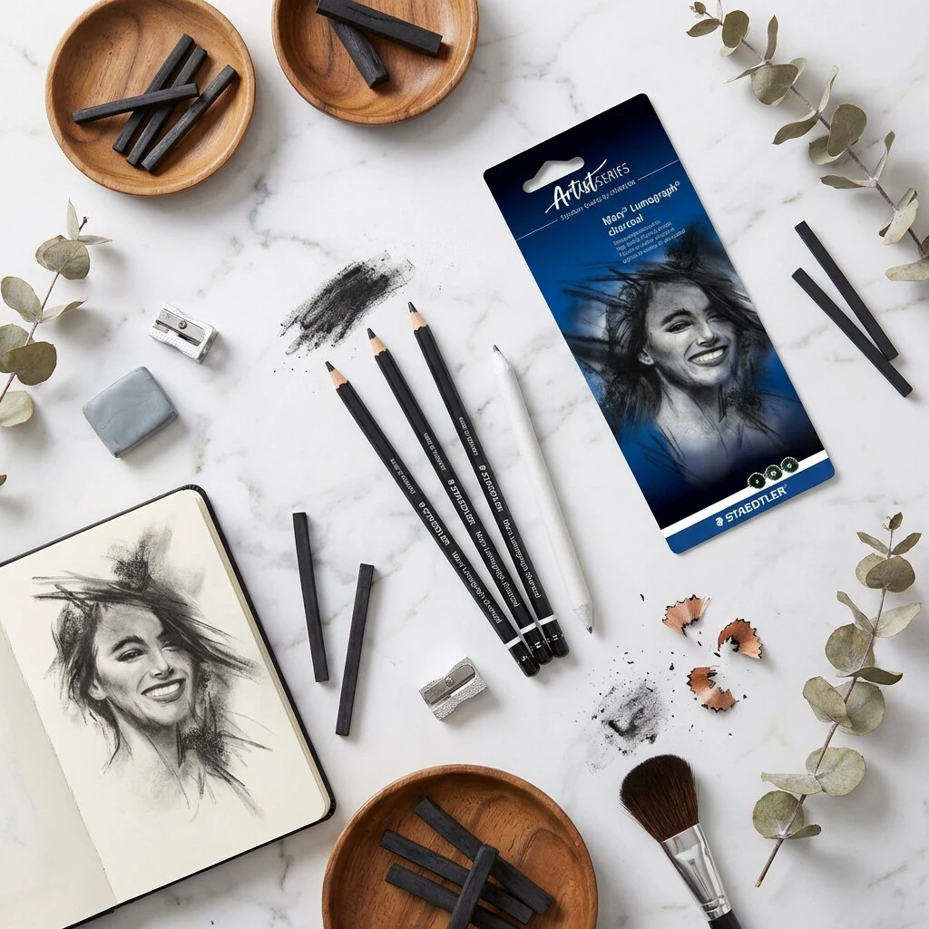 If you want charcoal that delivers deep black shades while still being as easy to control as a pencil, Mars® Lumograph® 100C is a strong choice. You get assorted grades and a practical blending stump, so you can work both in detail and freely with tone. A simple set that makes it easy to get started – and satisfying to refine your technique.