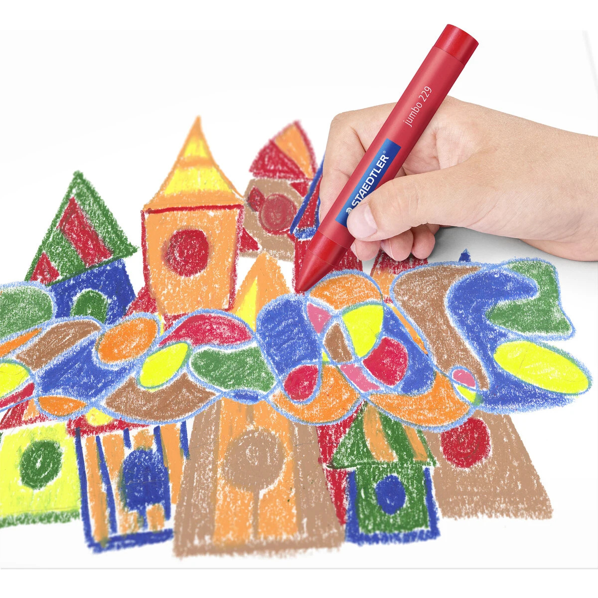 STAEDTLER® Noris Jumbo wax crayons are made for those first creative moments, where little hands need a secure grip and great results straight away. The round jumbo crayons sit steadily in the hand and create a smooth, colourful line, making it easy to fill larger areas. With brilliant colours, they are ideal for everything from free imaginative play to more guided drawing tasks. The paper sleeve also helps keep fingers clean and makes the crayons more hygienic to share.