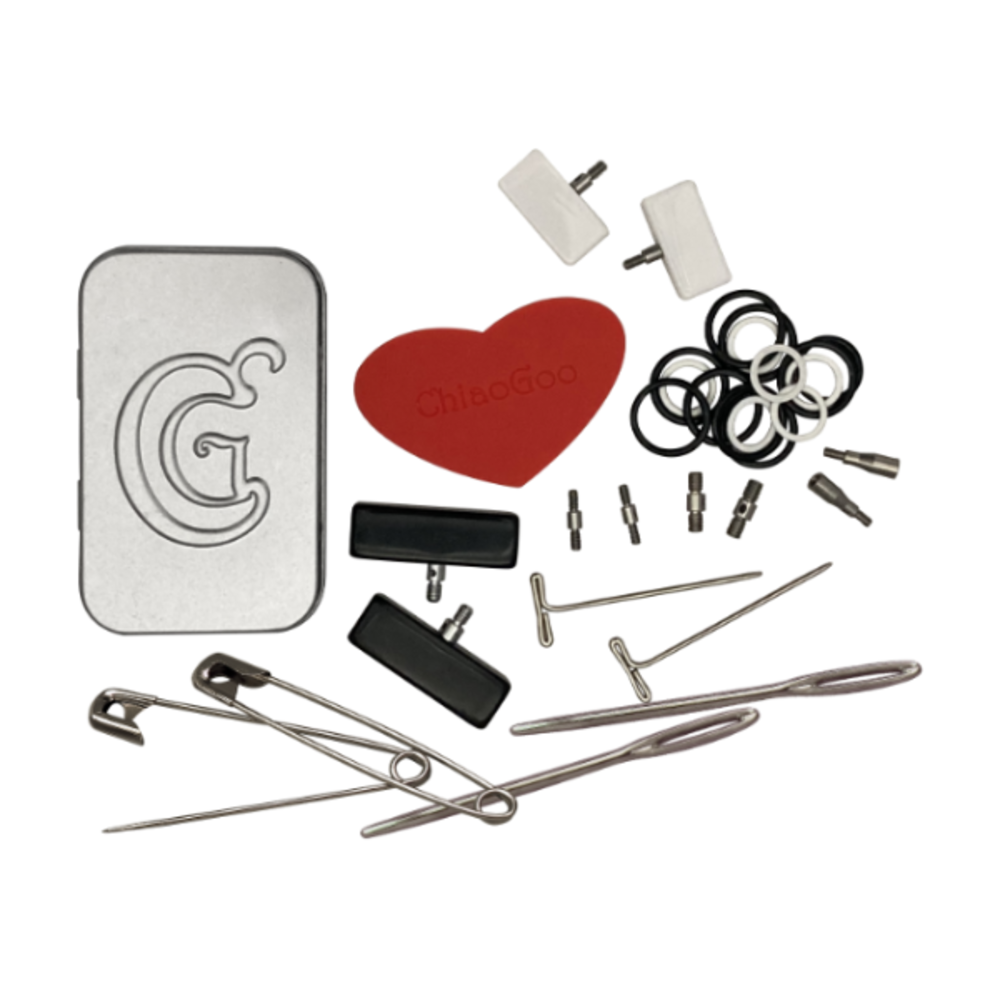 The ChiaoGoo Accessory Set Small/Large is an all-in-one solution for knitters who value quality, functionality and organization. With tools for adjustment, assembly and project management, knitting becomes more efficient and hassle-free.