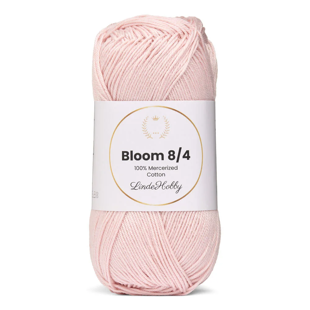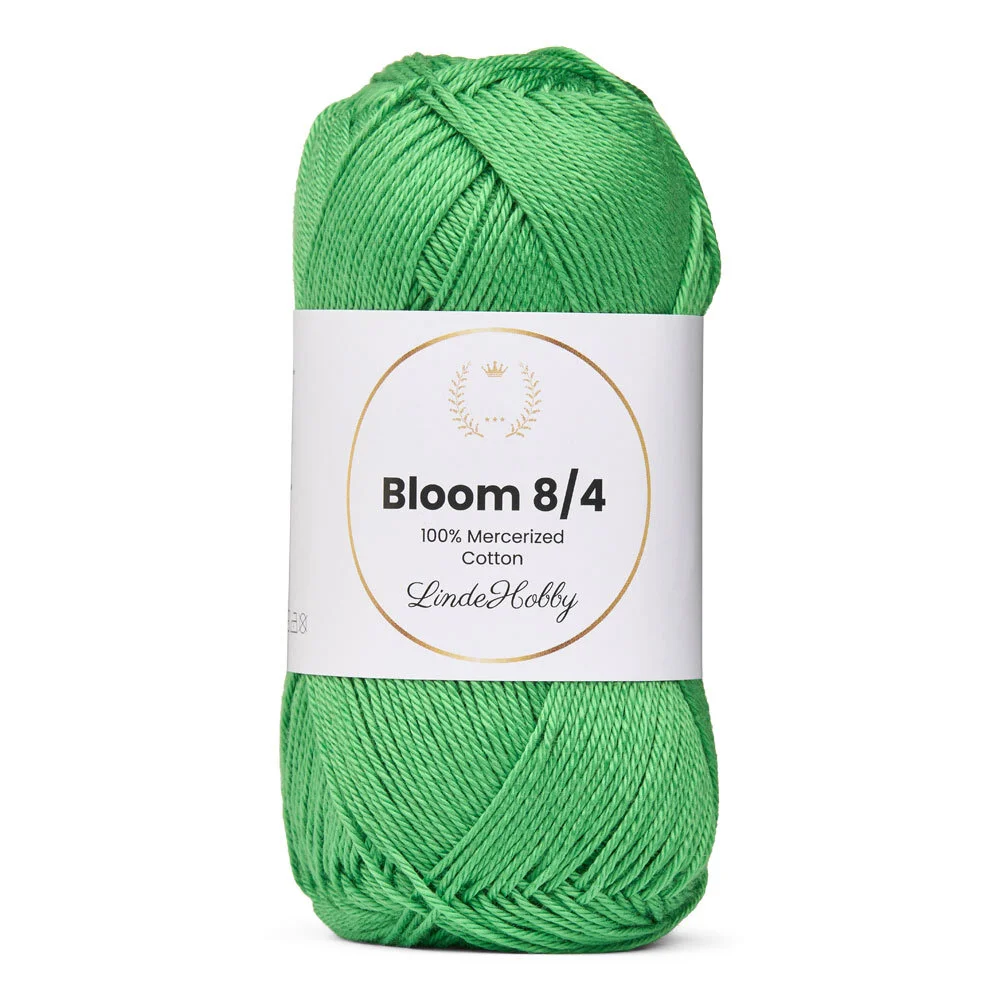 LindeHobby Bloom 8/4 Mercerized Cotton is a shiny and durable yarn made of 100% mercerized cotton. It’s the thinner version of the popular Bloom 8/8 and offers the same elegant finish and high quality – perfect for fine and detailed crafts. The yarn comes in a wide range of beautiful colours, giving you creative freedom for both crochet and knitting.